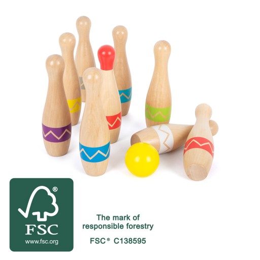 Kręgle zostały wykonane z wysokiej jakości drewna FSC.