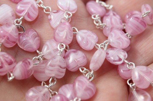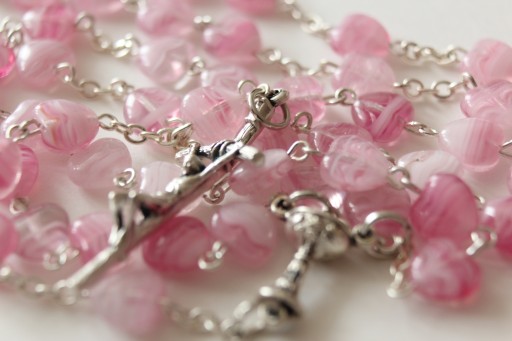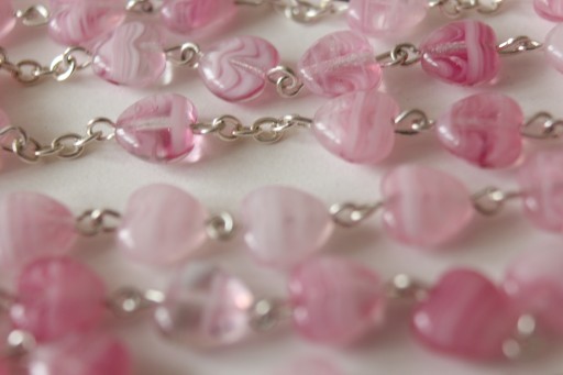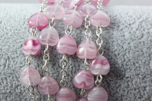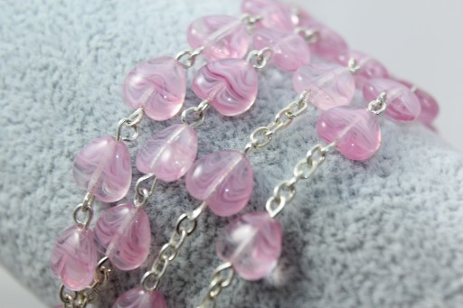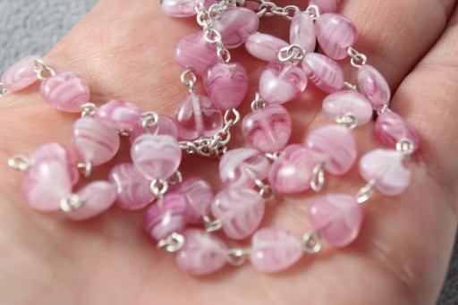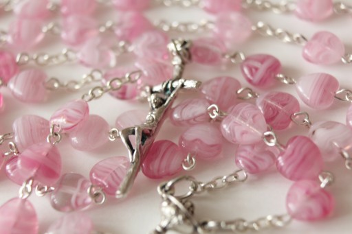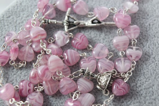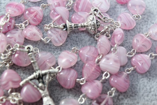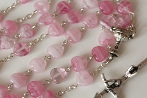 Prześliczny różaniec komunijny - serduszka różowe cieniowane
