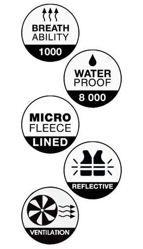 Wykonana z wysokiej jakości materiału – poliestru (94%) i elastanu (6%), który zapewnia ochronę przed chłodem i wilgocią. Podszewka z mikropolaru chroni przed wychłodzeniem w czasie wędrówek i spacerów.