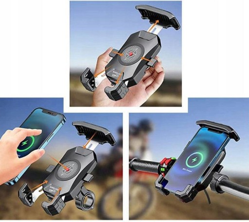 Uniwersalny uchwyt motocyklowy na smartfon mocowany do kierownicy i ładowarką indukcyjną złącze USB Typ-C.