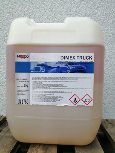 Dimex Truck to maksymalnie skuteczna piana do mycia ciężarówek! Posiada wyjątkowe właściwości myjące i odtłuszczające, dzięki czemu deklasuje inne, obecne na rynku preparaty. Znakomicie usuwa zanieczyszczenia drogowe i pozostałości po produktach ropopochodnych. Doskonale sprawdza się również do mycia plandek, maszyn budowlanych i przemysłowych. A to dopiero początek jej zalet!