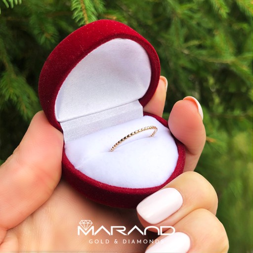 ❤ Nowoczesny i filigranowy złoty pierścionek w formie obrączki, która doskonale prezentuje się w zestawieniu z innymi celebrytkami. Pierścionek wykonany z najwyższej jakości żółtego złota próby 333 (8K).