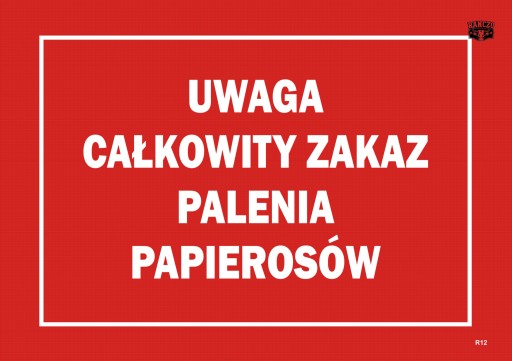 TABLICA INFORMACYJNA z nadrukiem "UWAGA CAŁKOWITY ZAKAZ PALENIA PAPIEROSÓW"