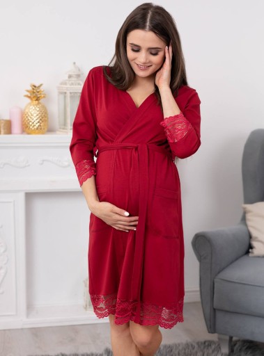 BORDOWY BAWEŁNIANY SZLAFROK GRACE - KORONKA