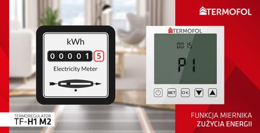 Termoregulator TF-H1 posiada wbudowaną funkcję pomiaru energii elektrycznej, dzięki której mamy możliwość odczytu zużycia z dokładnością do 1kWh.