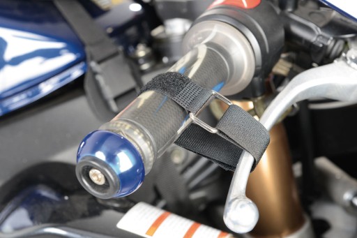 Idealne wsparcie podczas pielęgnacji łańcucha lub felg. Wystarczy najechać tylnym kołem na platformę, włożyć podkładkę pod stopkę boczną i zablokować dźwignię hamulca za pomocą paska. Dzięki temu można wygodnie kręcić kołem jedną ręką, a drugą np.: czyścić łańcuch. Rolki pod tylne koło z gumowanymi stopkami zapobiegającymi przesuwaniu się po podłodze garażu lub warsztatu. Podkładka z antypoślizgową strukturą powierzchni i pasek zabezpieczający do zablokowania dźwigni hamulcowej zapewniają stabilność motocykla.
