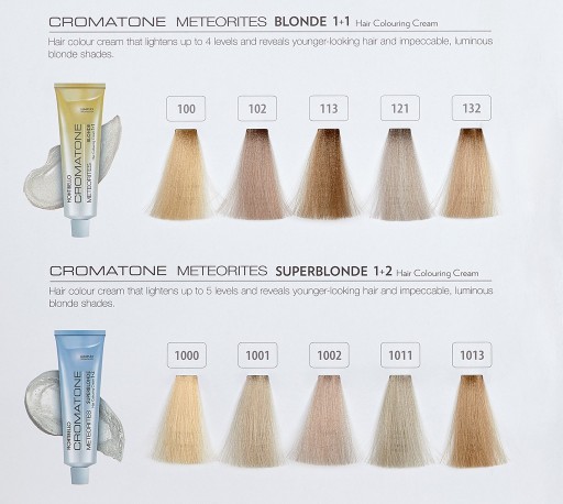 Cromatone Meteorites to nieskazitelność, trwałość odcieni blond, jedwabista miękkość włosów w dotyku, głęba oraz wielobarwności warstw koloru i wielowymiarowy blask odżywiający pasma pozbawione wyrazu.