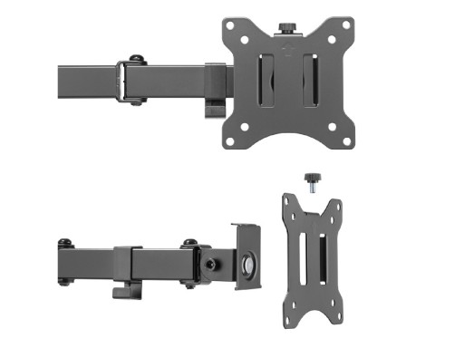 Uchwyt przeznaczony do monitorów 17" do 32" o maksymalnej wadze 8 kg. Uchwyt został wykonany z najwyższej jakości metalu (połączenie stali, aluminium formowanego ciśnieniowo oraz tworzywa) w kolorze czarnym. Elementy uchwytu monitora zostały idealnie dopasowane zapewniając stabilną i bezpieczną podporę do monitora.