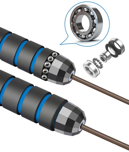 Zamontowane w uchwytach łożyska, zapobiegają skręcaniu się linki skakanki. Pleciona stalowa lina dodatkowo jest pokryta PCW, który charakteryzuje się trwałością i gładkością, zapewniając maksymalną żywotność i zapobiega pękaniu lub łamaniu.