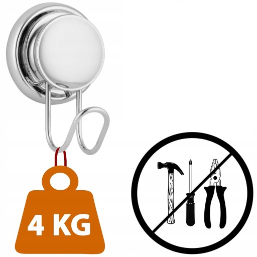 Wieszak łazienkowy z pojedynczym haczykiem mocowany do ściany na silną przyssawkę.