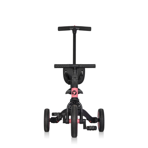Rowerek biegowy – dla dzieci w wieku od 3 do 4 lat. Dzięki innowacyjnemu opatentowanemu systemowi, wciskając zaledwie 3 przyciski i nie demontując żadnych elementów, przekształcisz rowerek trójkołowy w praktyczny edukacyjny rowerek biegowy. Wystarczy połączyć tylne koła w jedno stabilne podwójne koła i zdemontować pedały.