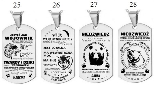 Na innych naszych aukcjach dostępne są również inne kolory (czarny, złoty) nieśmiertelników z tymi wzorami.