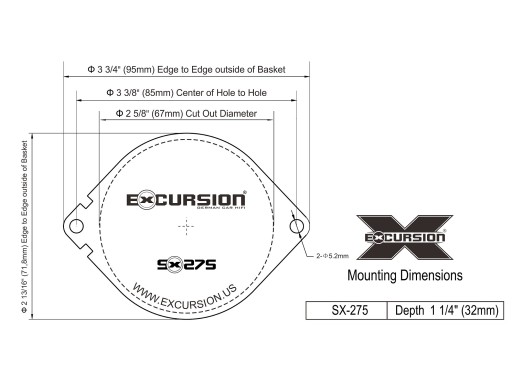 Szerokopasmowe samochodowe głośniki średnio-wysokotonowe marki Excursion z serii SX (Street eXcursion) posiadające membranę stożkową ADC o średnicy 70 mm wykonaną z dwóch warstw prasowanego papieru. Głośniki te zostały zaprojektowane jako lepsze zamienniki głośników OEM z przeznaczeniem do montażu w fabrycznych miejscach w samochodach Chrysler, Jeep, Dodge i Ford USA. Oferują solidne i zrównoważone brzmienie w zakresie średnich i wysokich częstotliwości pasma akustycznego. Dzięki niewielkim wymiarom (2,75") głośniki te mogą być również z powodzeniem stosowane w wielu innych aplikacjach.