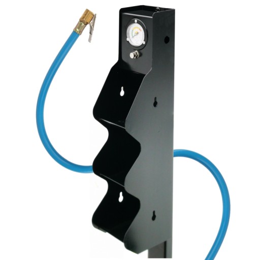 Dodatkową zaletą jest pistolet do pompowania opon z nożnym sterowaniem i długim wężykiem, zabudowany w praktycznej półce, co znacznie poprawia komfort pracy .