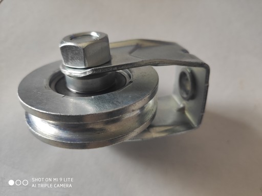 Rolka metalowa fi 49mm na linkę 8 mm z uchwytem ułożyskowana