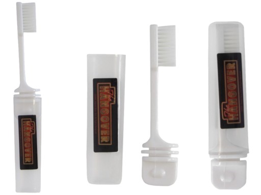 - szczotka do zębów chowana w opakowaniu (po wyjęciu opakowanie służy jako rączka) (całość: 16 x 2 x 1,5)