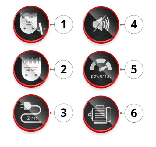 - Nowa wzmocniona obudowa z systemem tłumienia drgań i nowy wzmocniony silnik cewkowy powodują, że maszynka jest bardzo cicha podczas pracy