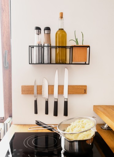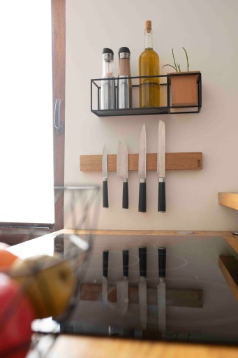 Listwa na całej swej szerokości posiada magnes, dzięki czemu z łatwością odłożysz nóż i inne przedmioty codziennego użytku. Dzięki temu oszczędzasz miejsce i zyskujesz więcej powierzchni roboczej.