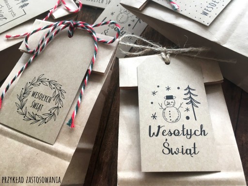 cena za 70 sztuk etykiet z papieru ekologicznego typu KRAFT o gramaturze ok. 250 g z dziurką o wielkości ok. 3 mm po 10 sztuk każdego z 6 wzorów (jak na zdjęciu) oraz 10 sztuk etykiet bez nadruku