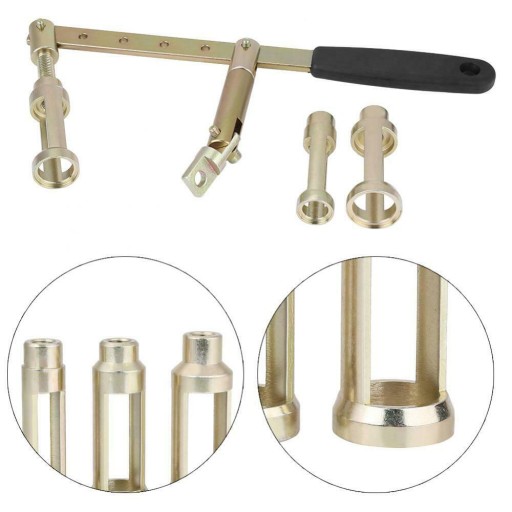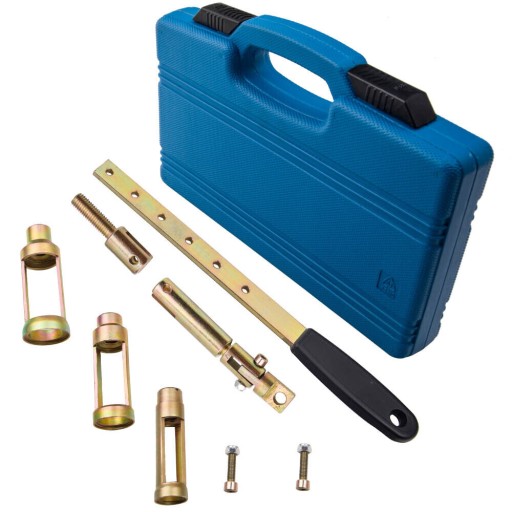 Ściągacz dźwigniowy przeznaczony do demontażu sprężyn zaworowych w silnikach 8V/12V/16V/24V. W komplecie zestaw trzech różnych końcówek do demontażu sprężyn.