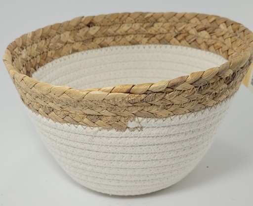 Modny koszyk z trawy połączony z bawełną to ładna dekoracja lub przedmiot do przechowywania rzeczy. Idealny akcent naturalnego wystroju wnętrza domu. Ten kosz to coś dla Ciebie. Gustowny pojemnik do przechowywania, nadający się do każdego pomieszczenia.