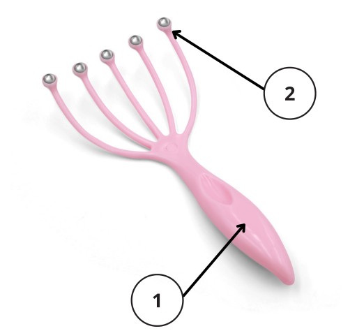 Wykonana z plastiku rączka świetnie leży w ręce. Pozwala nam komfortowo masować naszą głowę.