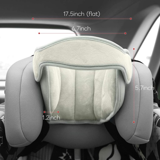 Łatwy montaż: po zaśnięciu dziecka umieść wyściełaną część na czole dziecka, a następnie przymocuj pasek do fotelika samochodowego / spacerowego.