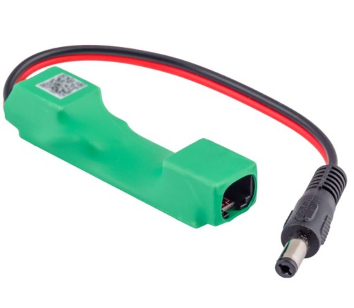 - przepuszcza zasilanie PoE z wejścia na wyjście RJ45 (zasilanie kamery)