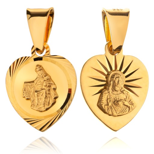 Medalik z wizerunkiem Matki Boskiej Szkaplerznej , a na odwrocie z otwartym sercem Pana Jezusa . Medalik wykonany w całości z najwyższej jakość srebra próby 925 , diamentowany*,pozłacany * .