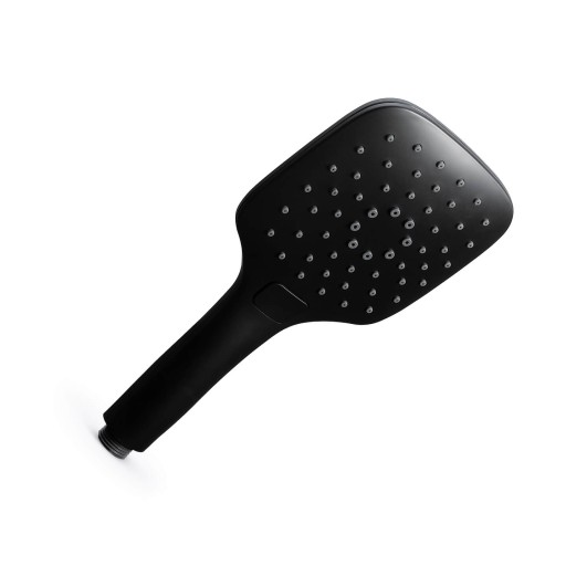 Słuchawka prysznicowa wykonana z trwałego tworzywa w czarnym matowym kolorze. Słuchawka posiada trzy funkcje natrysku co przekłada się nie tylko na wygodę użytkowania ale także na oszczędność zużycia wody. Funkcje zmienia się przy pomocy przycisku umieszczonego w górnej części uchwytu. Silikonowe dysze Anti-calc umożliwiają szybkie wykruszenie osadów, co dodatkowo wpływa na żywotność słuchawki oraz wygodę użytkowania.