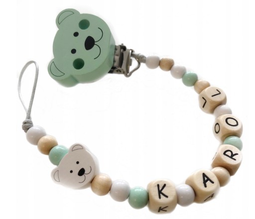 Drewniana spersonalizowana zawieszka do smoczków i gryzaków, świetnie sprawdzi się w domu i na spacerze, pozwoli zapobiec zgubieniu smoczka, gryzaka a nawet małego przyjaciela naszej pociechy.