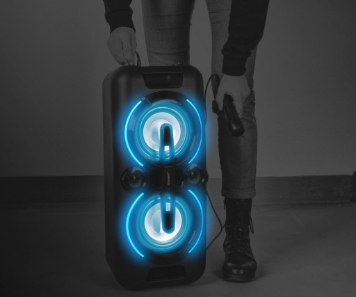 Potężny głośnik z systemem Bluetooth, to idealne rozwiązanie w domu i na imprezie. Rozbudowana funkcja karaoke zapewnia świetną rozrywkę oraz mnóstwo zabawy. Głośnik jest naprawdę potężny. Rewelacyjne brzmienie i mocny, dynamiczny bas oraz załączane efekty świetlne z pewnością urozmaicą Twoje przyjęcie czy imprezę.