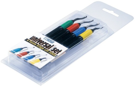 Kompaktowy, ekonomiczny zestaw do gratowania, który nadaje się do obróbki: tworzyw sztucznych oraz metali. Chwyt: 3.2 mm. Rękojeści oznaczone kolorami ułatwiają identyfikację narzędzia w czasie pracy.Dany kolor odpowiada za obróbkę określonego materiału. Zestaw jest bardzo ceniony przez użytkowników, ze względu na swoją uniwersalność.