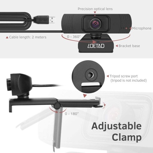 Ręczne ustawianie ostrości tej kamery internetowej o konstrukcji 1080P umożliwia precyzyjne dostrojenie ostrości. Można go obracać o 360 ° w poziomie, co jest bardzo wygodne do efektywnego użytkowania.