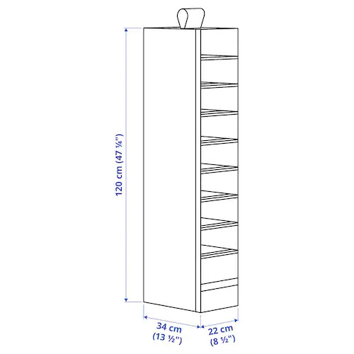 ПОДВЕСНАЯ ПОЛКА НА 9 ОТДЕЛЕНИЙ, БЕЛАЯ, 22x34x120см СКУББ