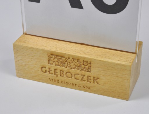 Na podstawce grawerujemy dwustronnie dowolnie wybrane logo lub napis.