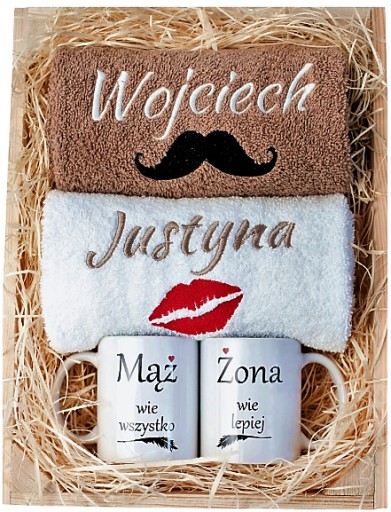 PREZENT ŚLUBNY NA ROCZNICĘ MĄŻ ŻONA RĘCZNIKI KUBKI