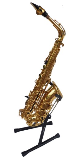 Wygodny, poręczny, lekki lecz stabilny, składany statyw do saksofonu altowego lub tenorowego.