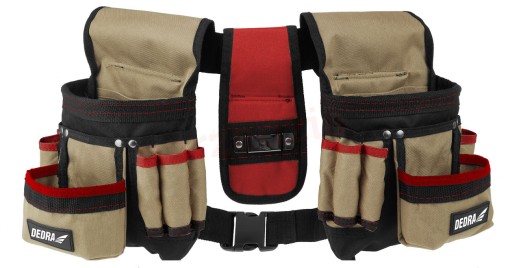 Pas narzędziowy 3- częściowy niezwykle przydatny podczas prac budowlanych, wykończeniowych, monterskich oraz majsterkowania. Umożliwia trzymanie w zasięgu ręki, wszystkich potrzebnych narzędzi i materiałów do pracy. A miejsca jest naprawdę dużo, bo pas ma 16 kieszeni, 2 przegrody, obszerną zewnętrzną kieszeń na gwoździe, wkręty lub inne drobne elementy, a także pętle na młotek i osobny pokrowiec na taśmy miernicze. Pas DEDRA wykonano z trwałego poliestru 600D. Dodatkowo, miejsca szczególnie narażone na rozdarcia i uszkodzenia są wzmocnione stalowymi nitami.
