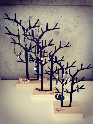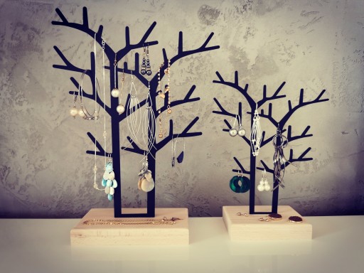 Nowoczesny stojak na biżuterię w postaci metalowego drzewka umieszczonego na drewnianej podstawie. Z pewnością stanie się świetnym dodatkiem do sypialni, który zachwycać będzie zarówno swoją praktycznością, jak i nowoczesną estetyką.