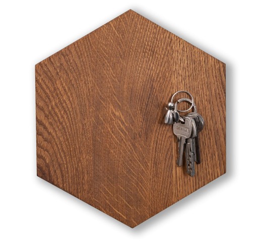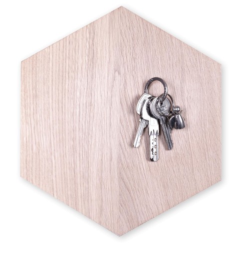 Heksagon na całej powierzchni posiada magnes, dzięki temu z łatwością powiesisz na nim klucze, bądź inne metalowe dodatki.