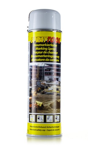 SPRAYTOOL Marking to farba w aerozolu przeznaczona do wykonywania oznaczeń na placach budowy oraz do znakowania przy pracach geodezyjnych i pomiarowych.