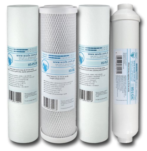- HS-PS-5 : Wkład wykonany z włókniny polipropylenowej. Dokładność filtracji > 5 mikron. Zabezpiecza membranę osmotyczną przed potencjalnie uwolnionymi z wkładu węglowego drobinami.