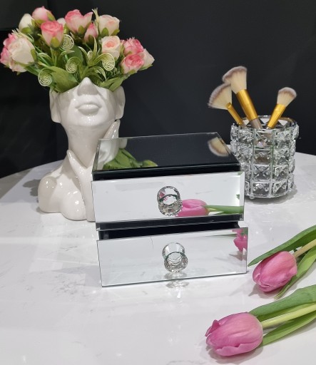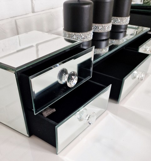 Idealne pudełko na biżuterię lub inne drobiazgi, świetnie sprawdzi się jako dekoracja we wnętrzach w stylu GLAMOUR. Środek pudełeczka jest welurowy.