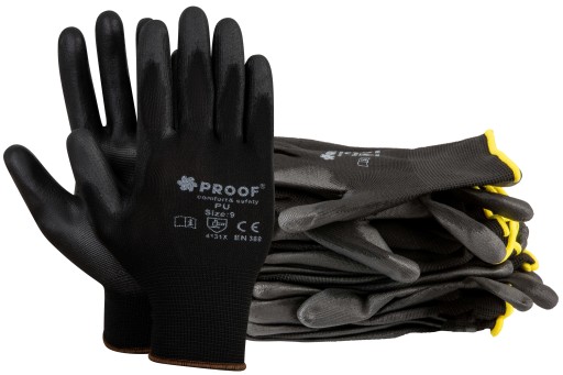 RĘKAWICE ROBOCZE OCHRONNE BHP PROOF BUDOWLANE CZARNE RĘKAWICZKI 10par r. 6