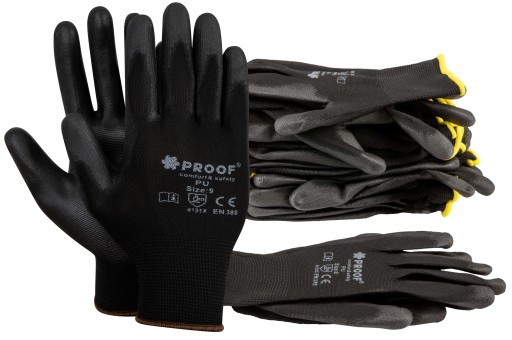 RĘKAWICE ROBOCZE CZARNE RĘKAWICZKI PROOF 8- 10par