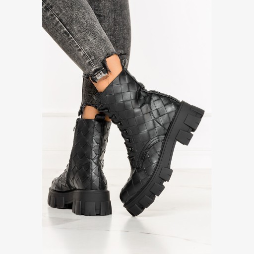 Czarne workery na platformie wzór plecionki sznurowane Casu G212X3-B