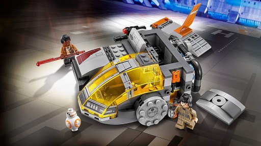 Ucieknij w bezpieczne miejsce w kapsule transportowej Ruchu Oporu. Otwórz kokpit, posadź w środku Finna i Rose i startuj! Jeśli trafisz na kłopoty, obróć silnik i wyceluj miotacz klocków lub przekręć kółko i wystrzel ze sprężynowych działek. Zaraz, czy ktoś widział BB-8?