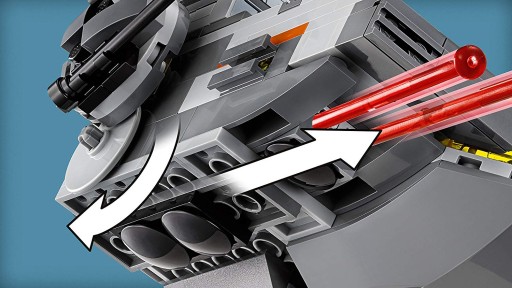 - Kapsuła ma kokpit na dwie minifigurki ze zdejmowaną osłoną, odczepiane panele skrywające składzik broni i schowek, ruchomy miotacz klocków oraz dwa sprężynowe działka.