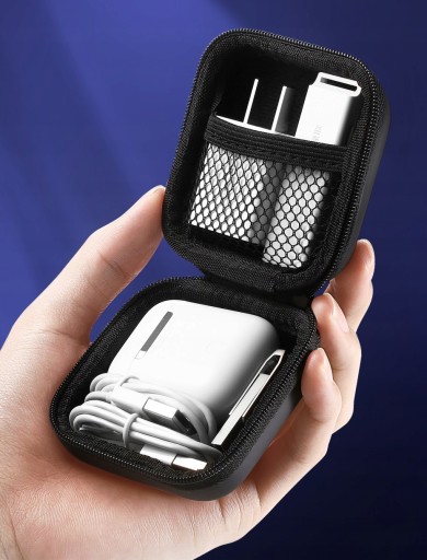 Etui marki Ugreen przeznaczone do słuchawek przewodowych i bezprzewodowych. Łatwo zmieścisz w nim słuchawki AirPods z przewodem do ładowania i ładowarką sieciową, pendrive lub inne drobne akcesoria elektroniczne.